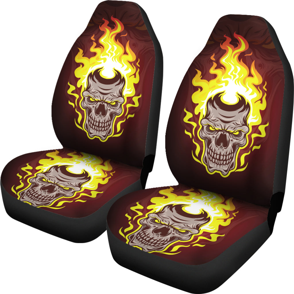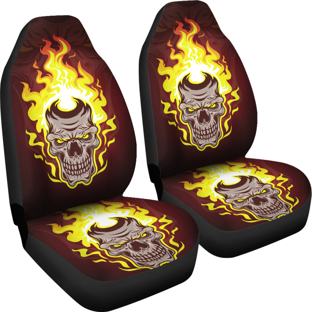 Set of 2 - Gothic horror Halloween skull flaming drum, skull car seat cover