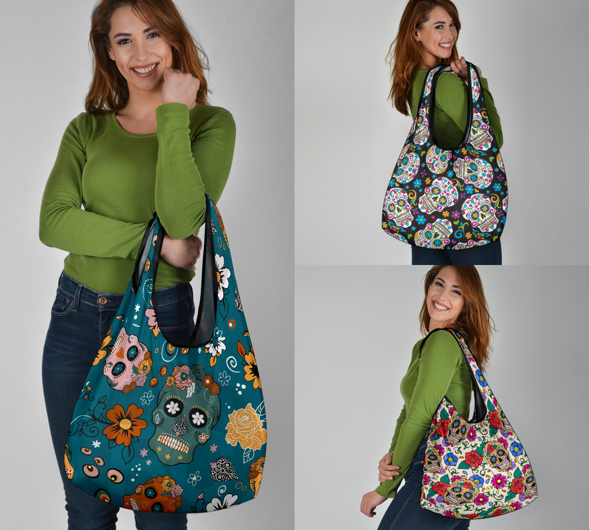 • Add style and personality to your grocery shopping routine with a 3-pack of custom printed grocery bags!