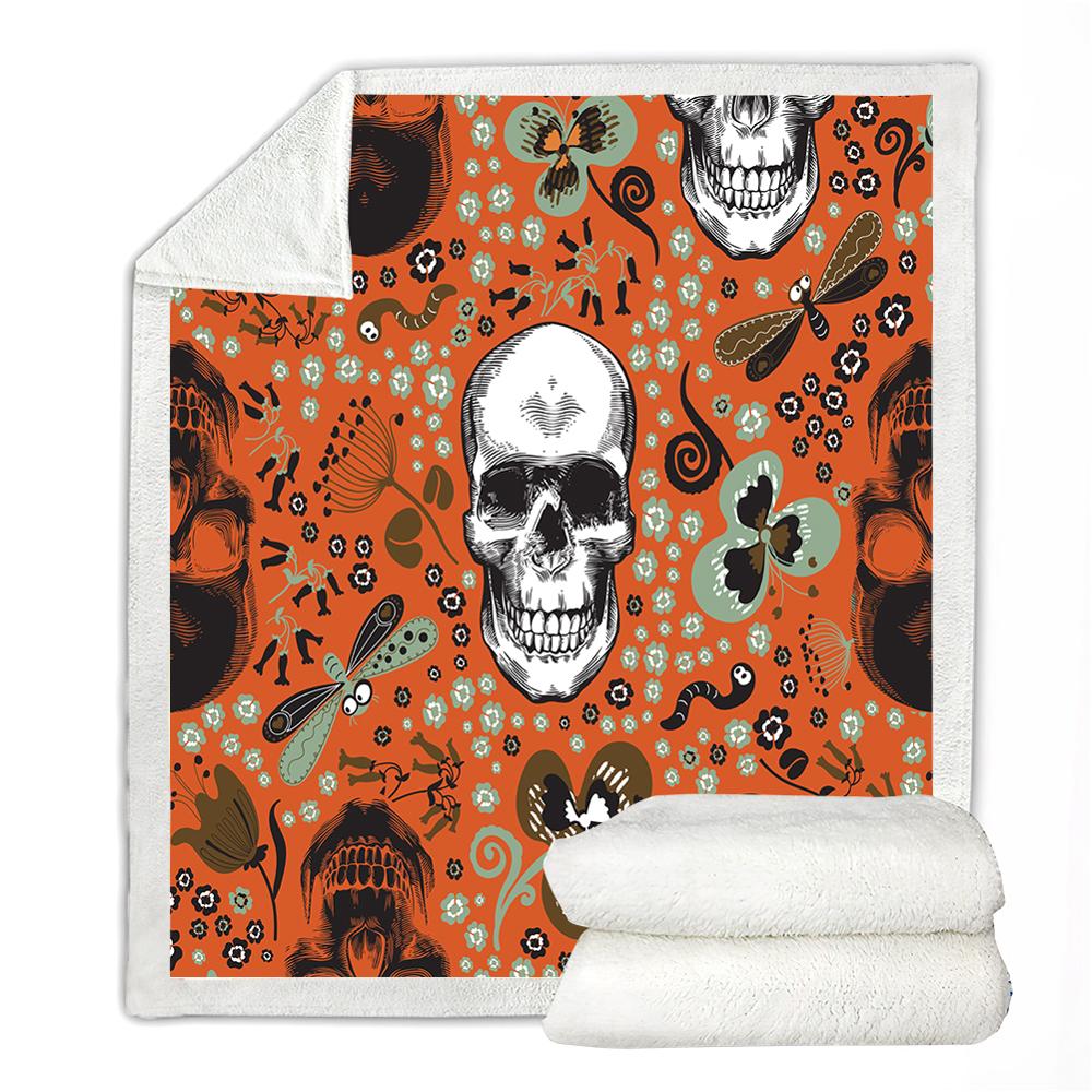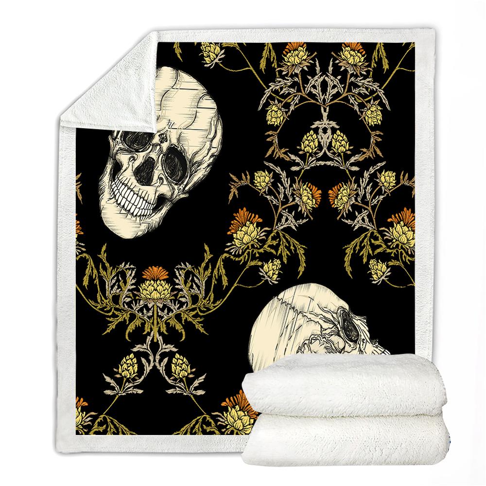 Skull Blanket Floral Skull Throw Blanket Black White Background Sherpa Fleece Blanket