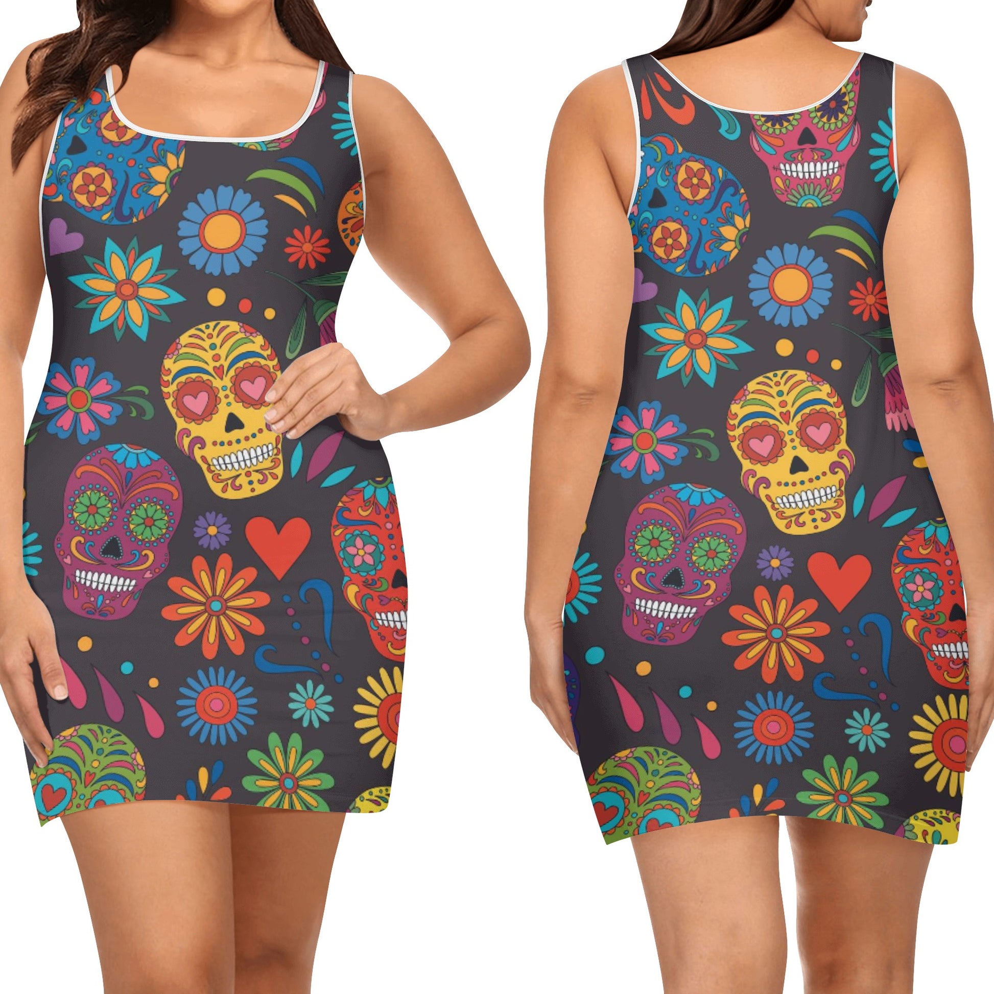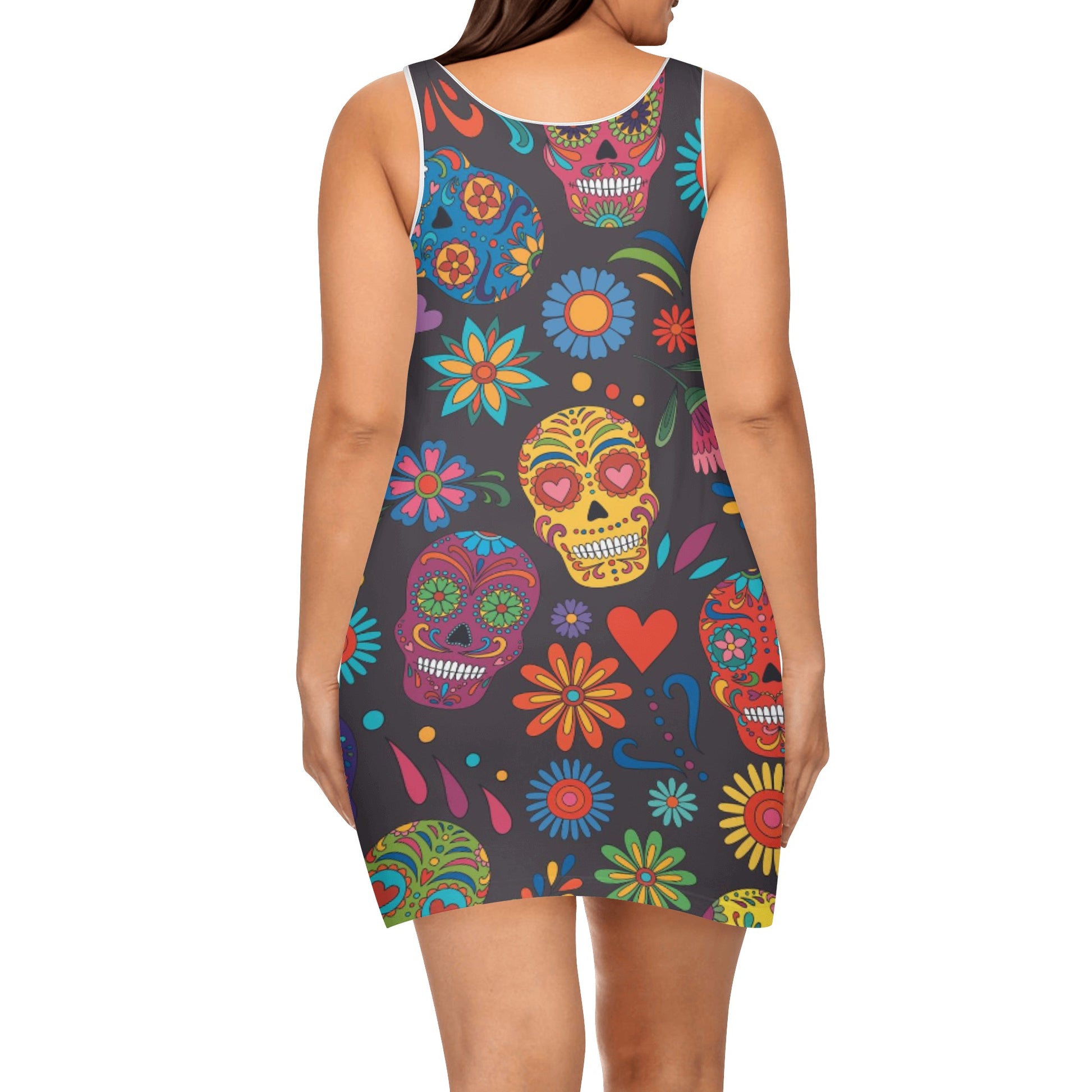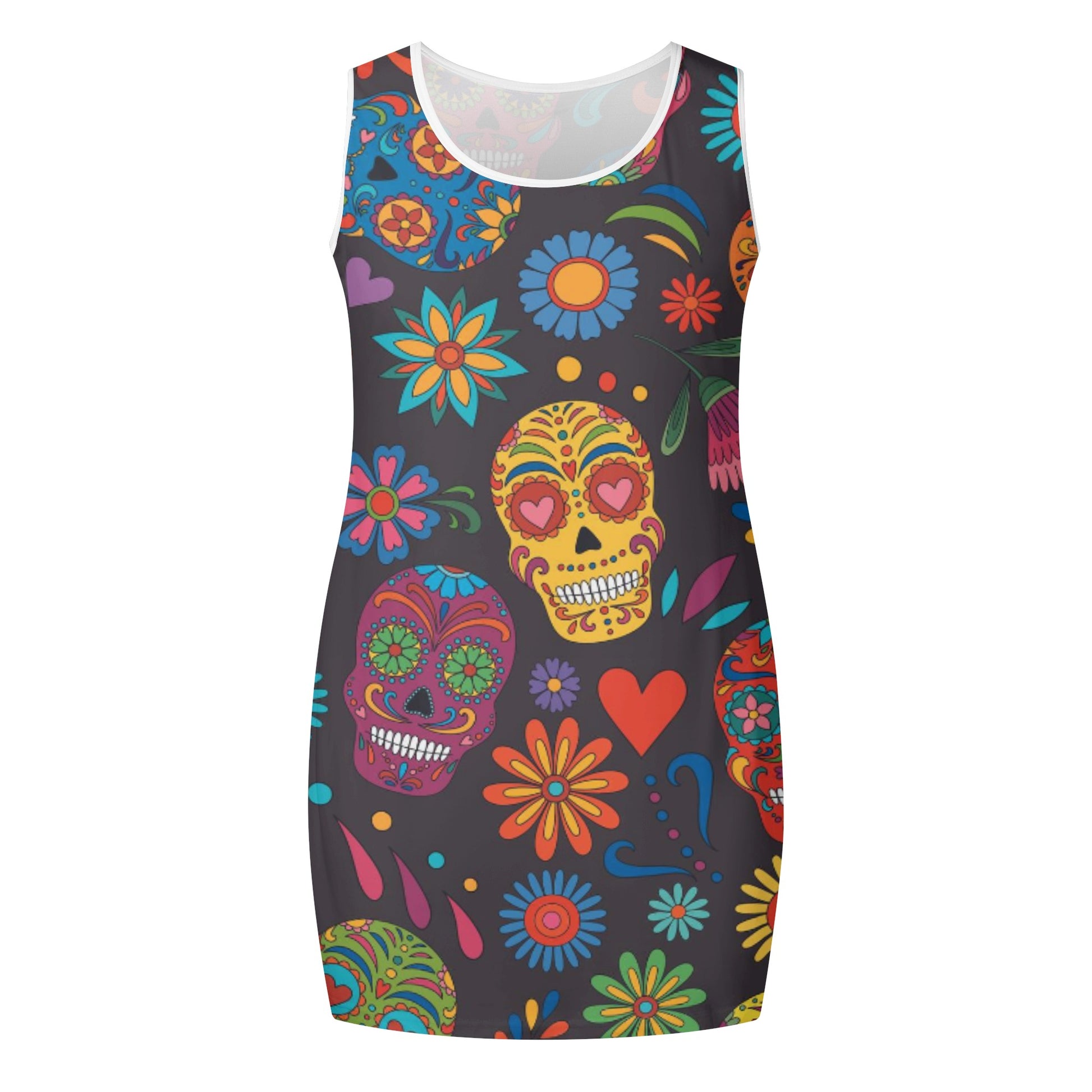 Sugar skull Day of the dead Mexican skull Women's Elegant Sleeveless Mini Dress