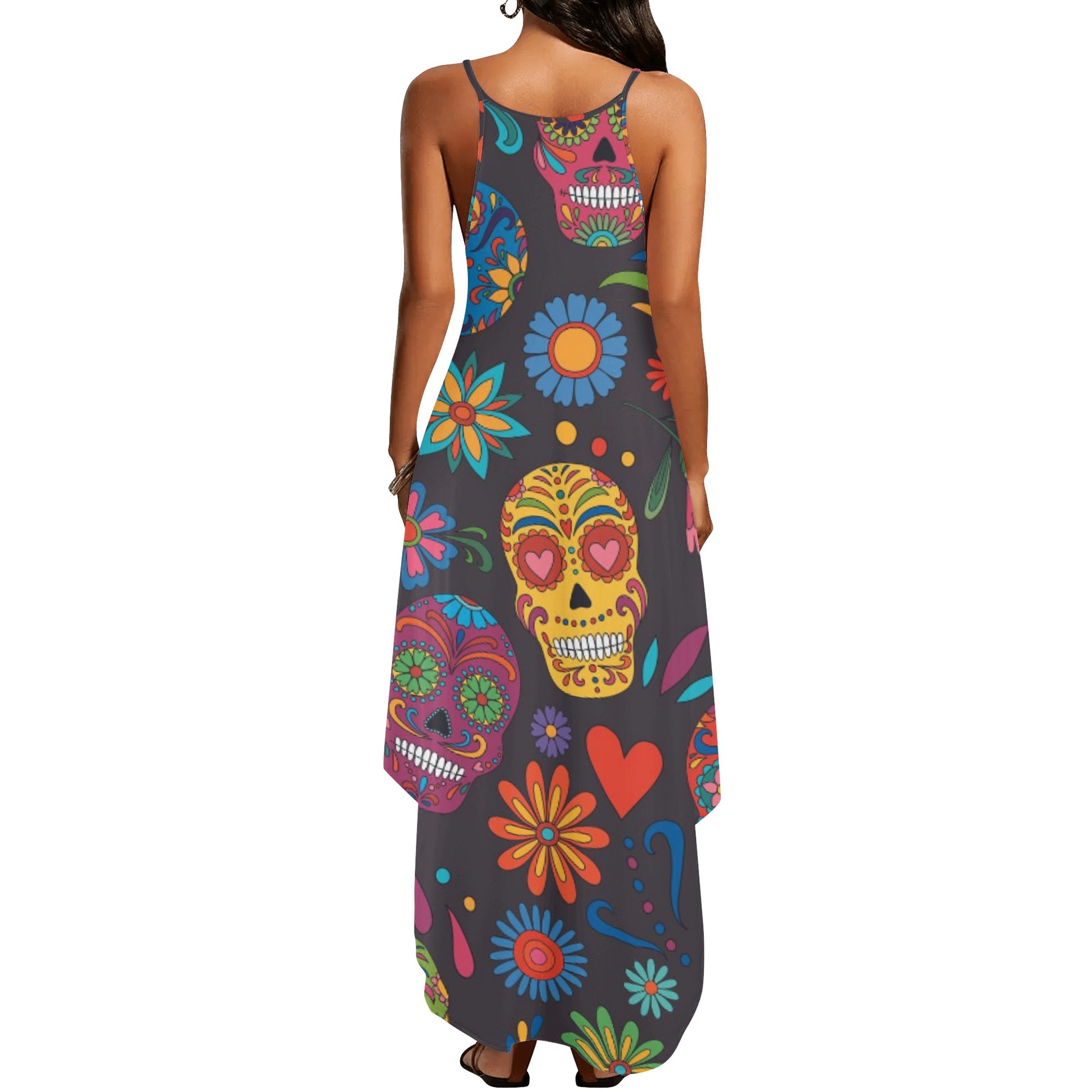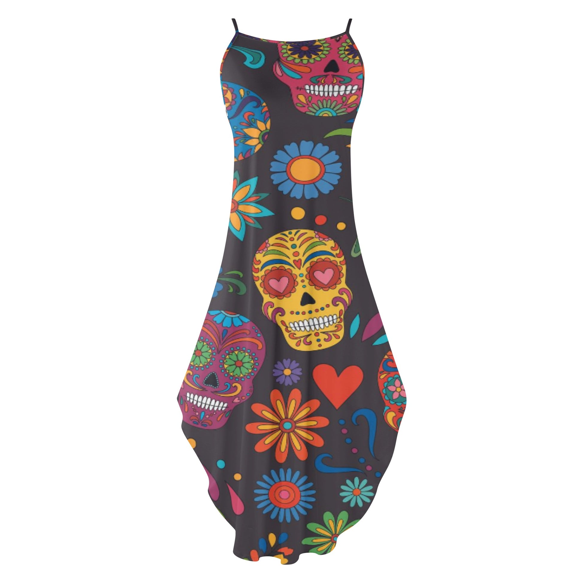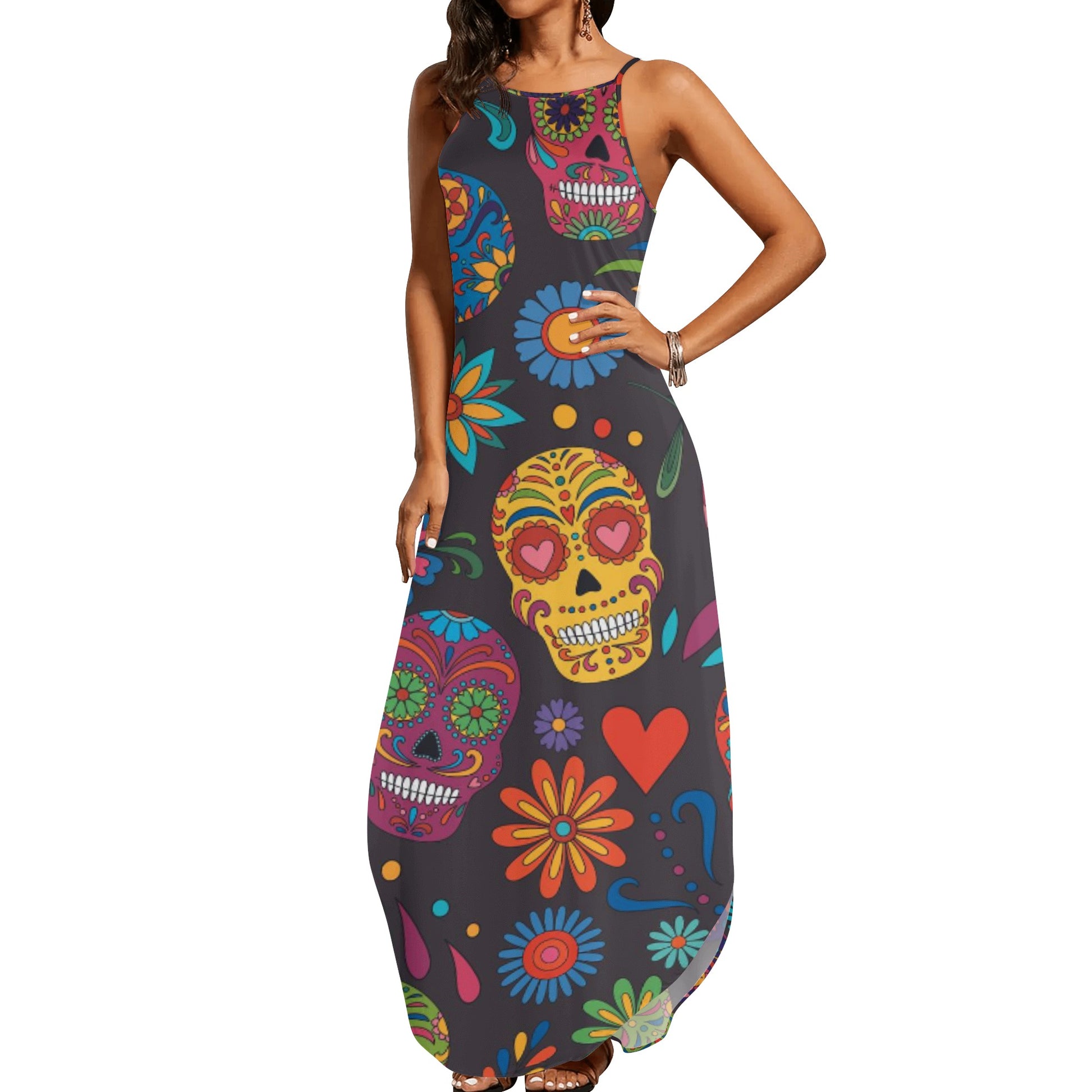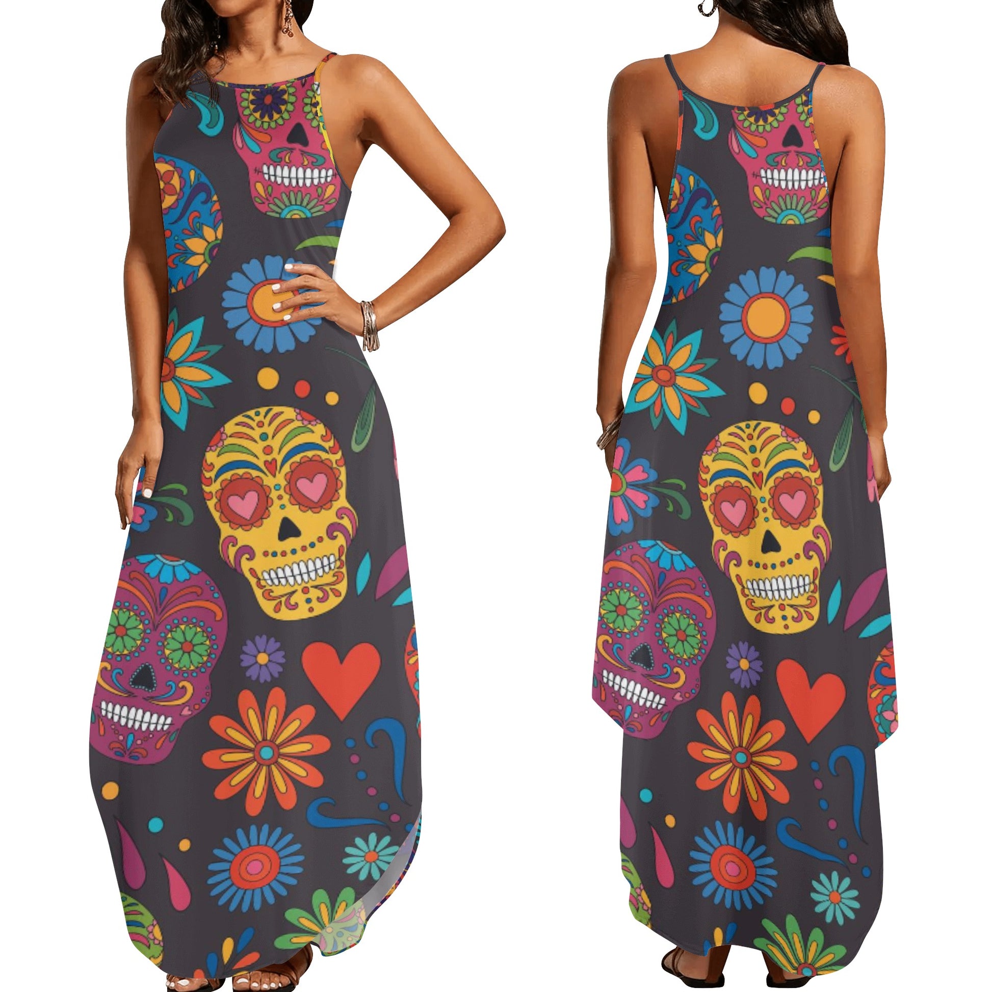 Sugar skull day of the dead mexican skull Women's Elegant Sleeveless Party Dress