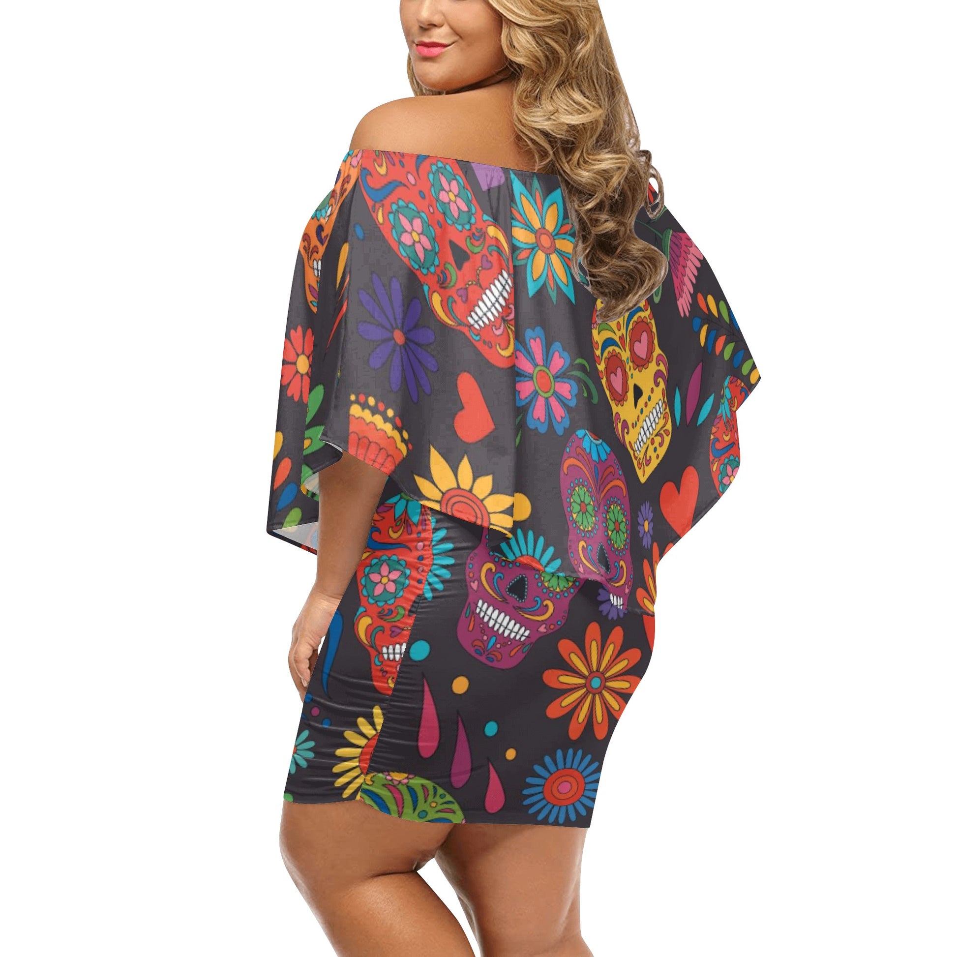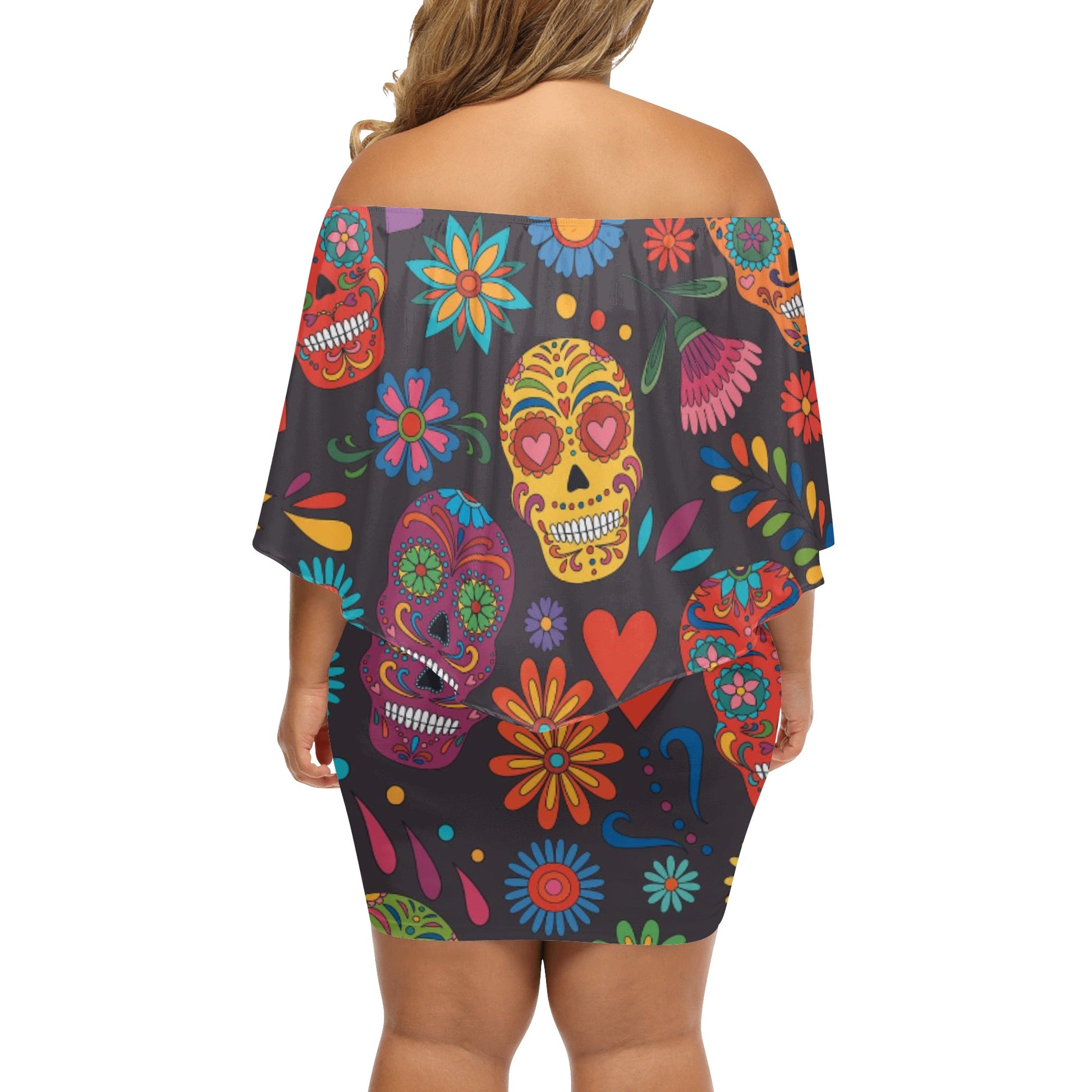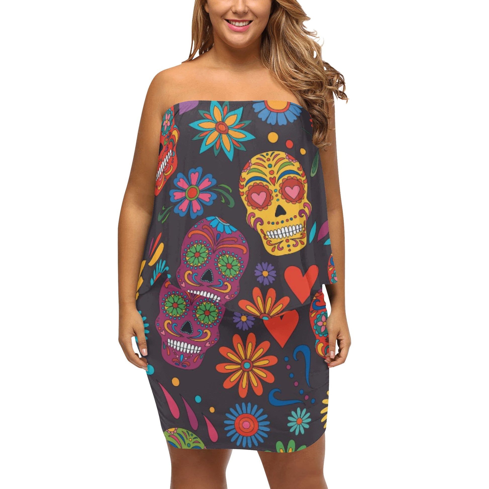 Sugar skull Day of the dead Mexican skull Women's Off-the-shoulder Tube Dress