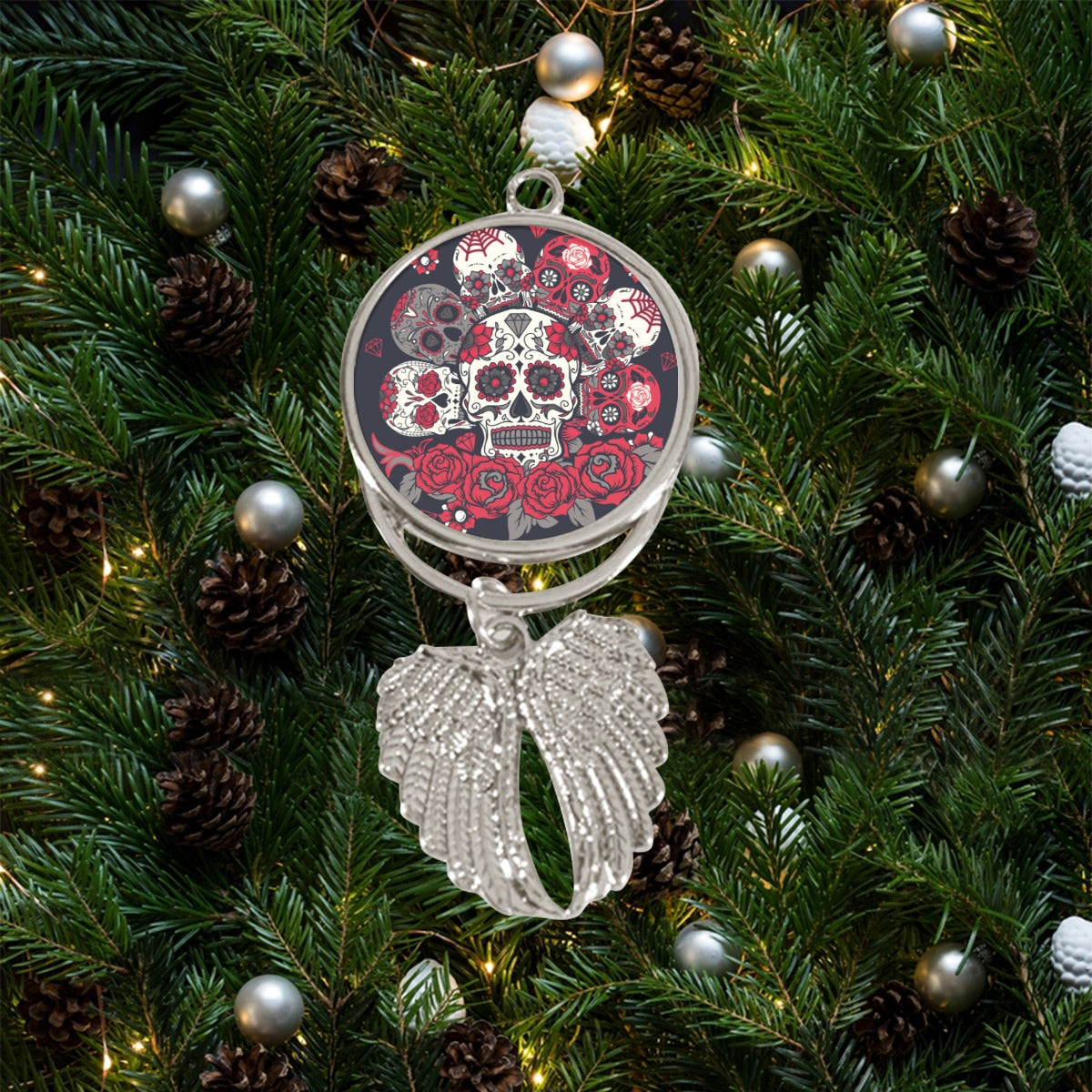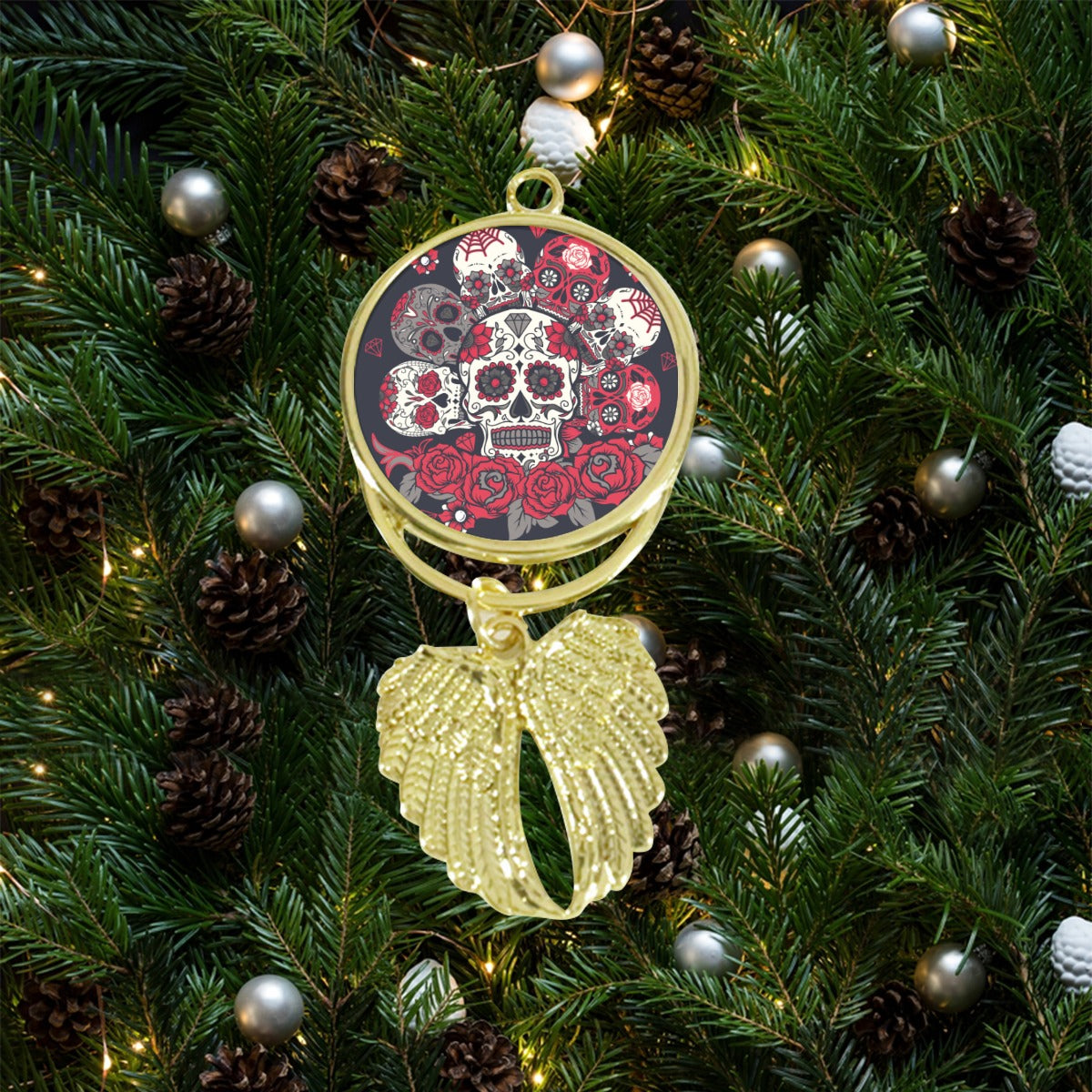 Sugar skull Double-Side Printing Feather Shaped Christmas Tree Pendant