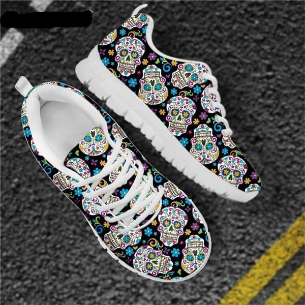 Sugar Skull Floral Flats Sneaker Shoes for Women