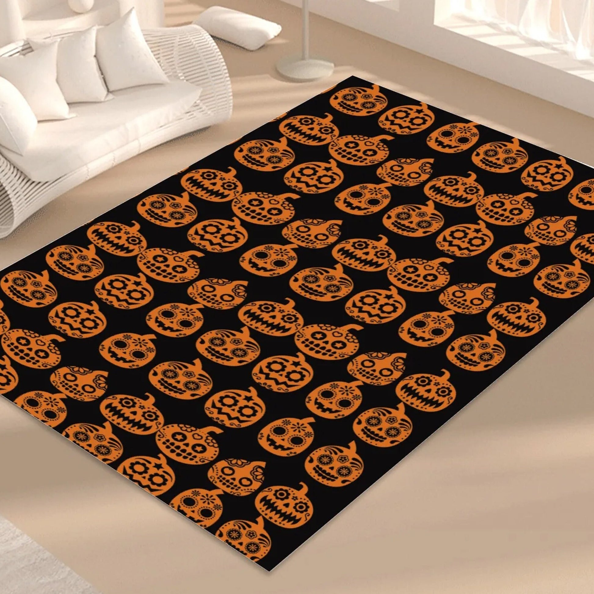 Sugar skull pumpkin carpet, floral sugar skull kitchen mat, dia de los muertos skull carpet, sugar skull girl floor carpet, candy skull rug