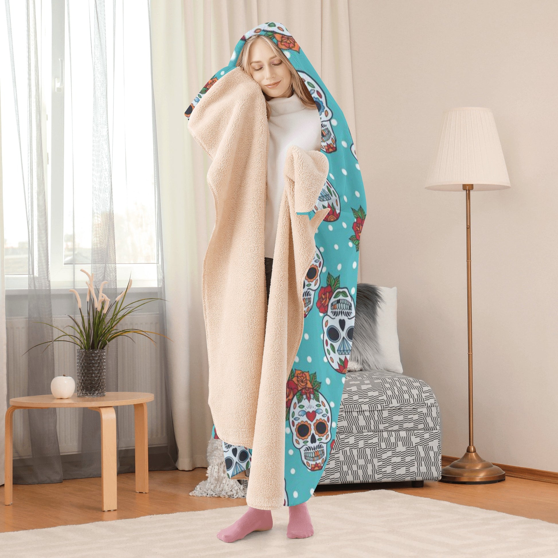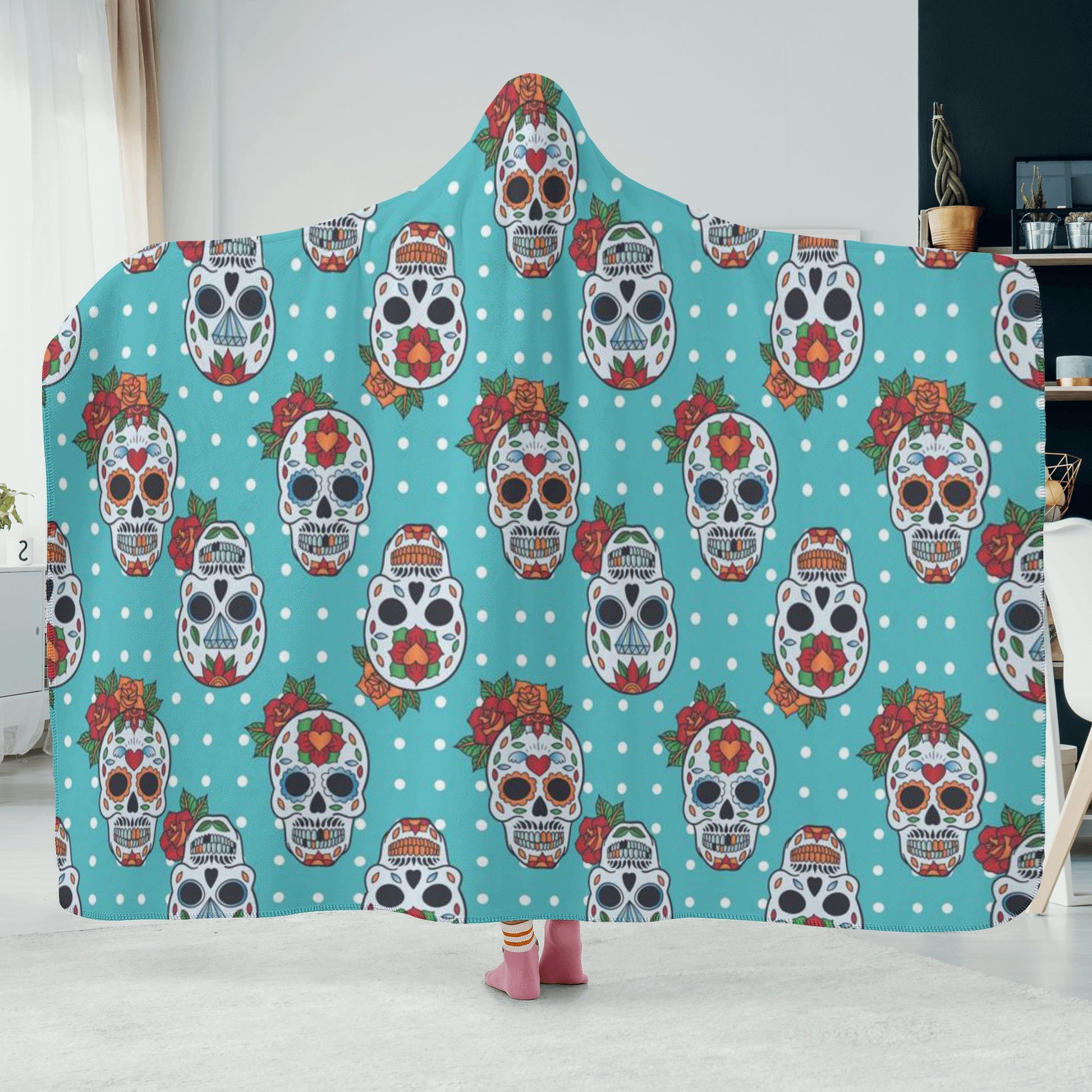 Sugar skull hoodie blanket, sugar skull blanket, Day of the dead Christmas blanket, skeleton hoodie blanket, sugar skull hooded blanket, Dia de los muertos Calaveras Mexican hooded blanket