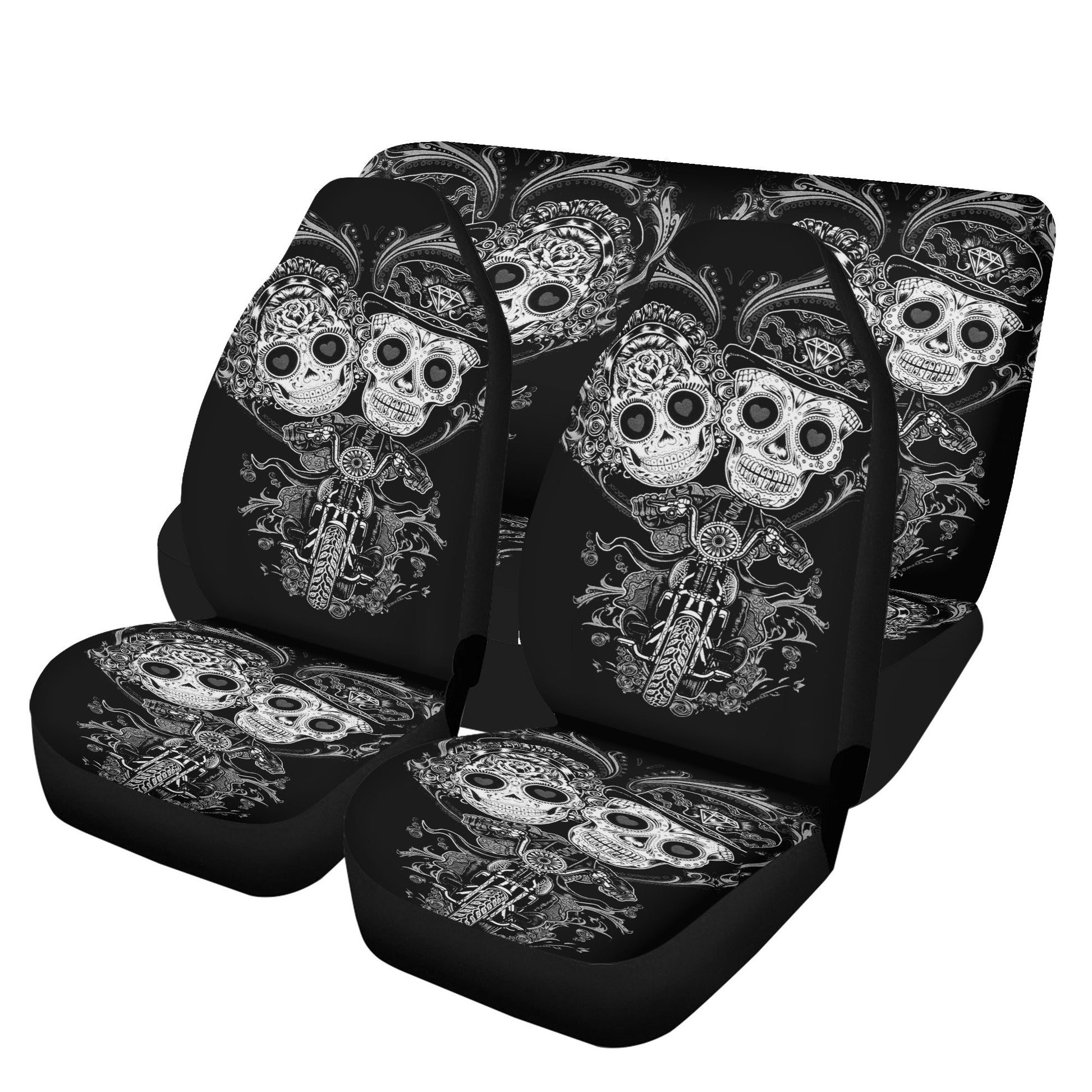Sugar skull seat cover for car, candy skull car accessories, floral sugar skull rug for car, dia de los muertos skull truck seat cover mats