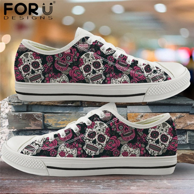 Sugar Skull Sneakers Print Punk Style Vulcanized Shoes