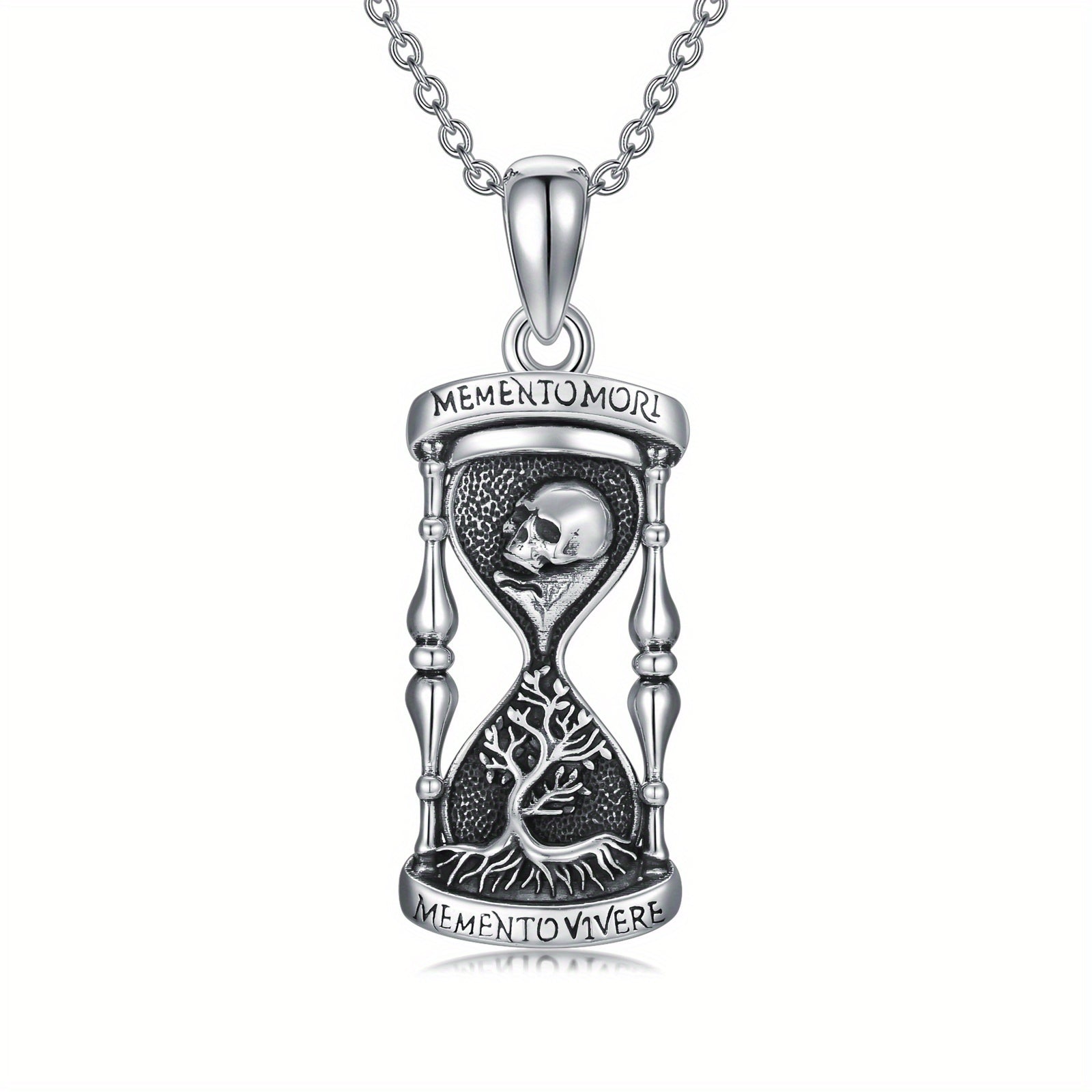 Tree of Life Timer Necklace 925 Sterling Silver Memento Mori Necklace with Skull Pendant and Timer Jewelry for Women & Men