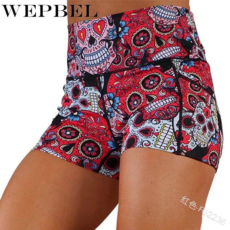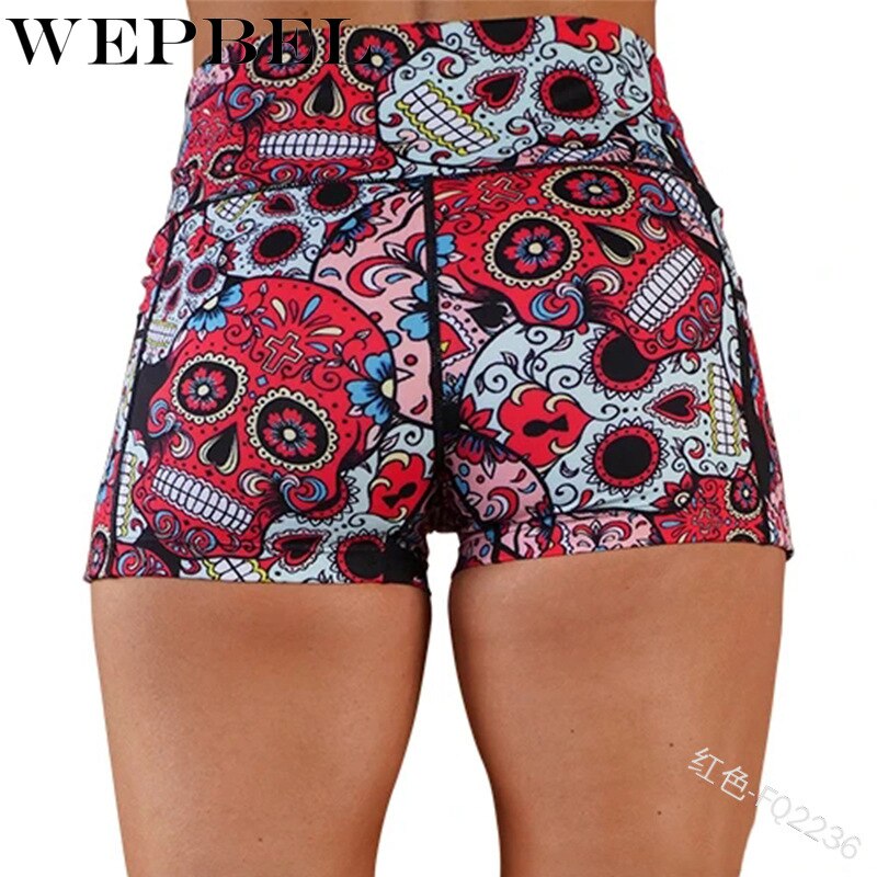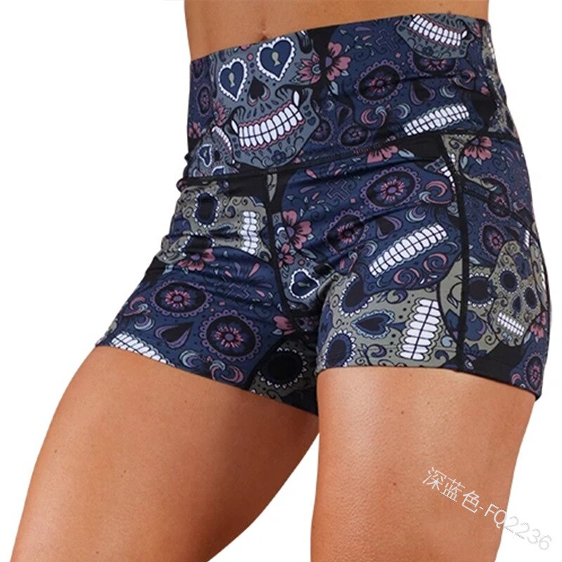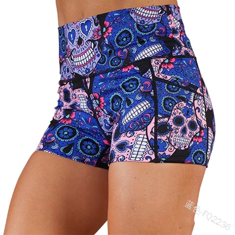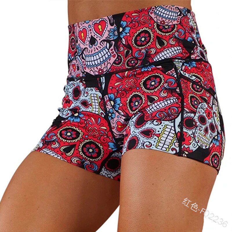 Women Summer Skinny Shorts Casual High Waist Skull Print Short Leggings