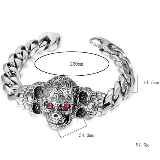 220mm Men's Titanium Steel Big Skull with Red Cubic Zirconia BraceletRegular price $55.99 USDRegular priceUnit price per$99.99 USDSale price $55.99 USDSale