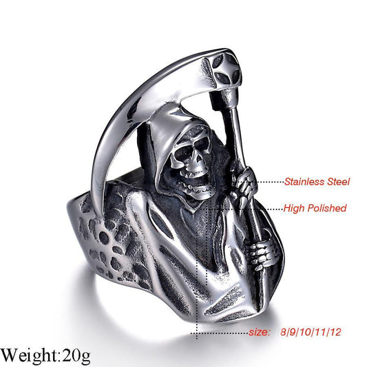Vintage Punk Style Grim Reaper Skull Ring Stainless Steel