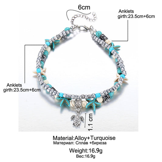 Vintage Shell Beads Starfish Sea Turtle Anklets For Women New Multi Layer Anklet Leg Bracelet Handmade Jewelry