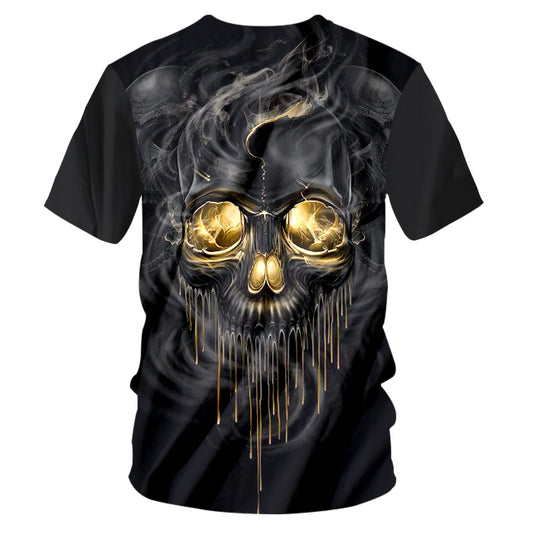 Black Tshirts Men Hip Hop Short Sleeve Crewneck T Shirt Man 3d Cool Print Smoking Skull T-shirts Hip Hop Punk Undershirts