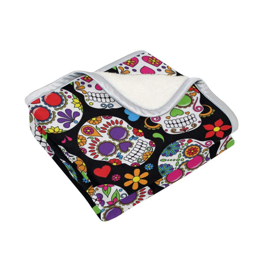 Colorful Floral Sugar Skull Black Blanket Soft Warm Cozy Bed Couch Lightweight Polyester Microfiber Blanket