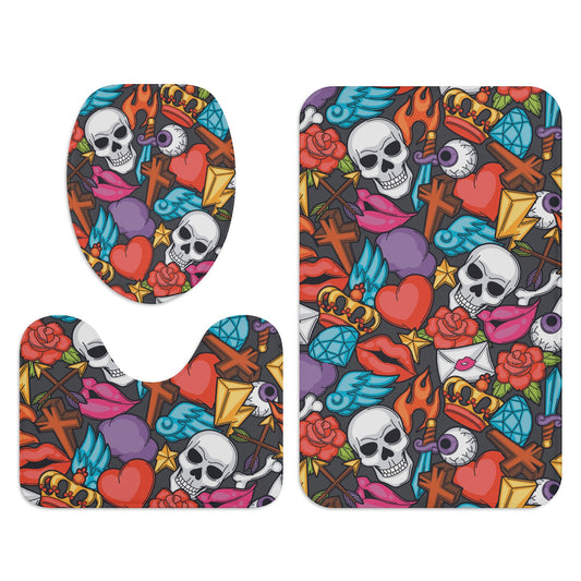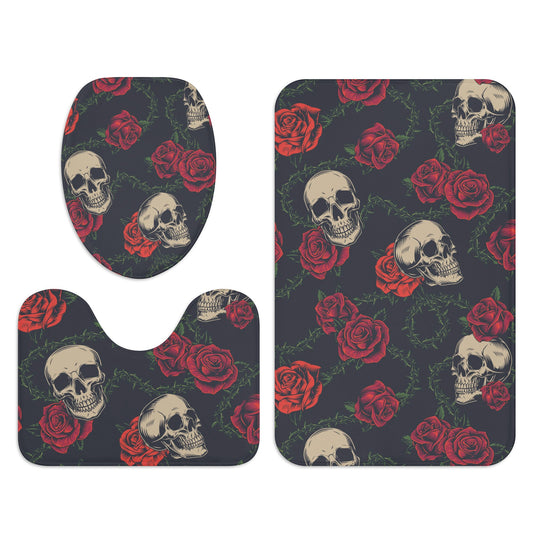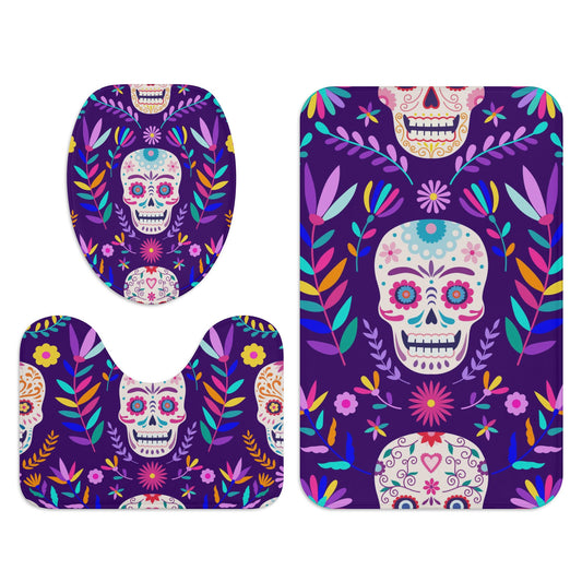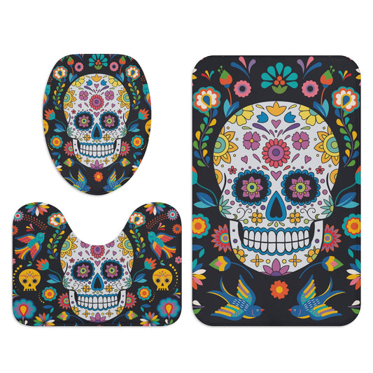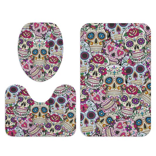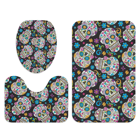 Set 3 pcs Sugar skull Calaveras skull Bath Room Toilet mats and shower curtain