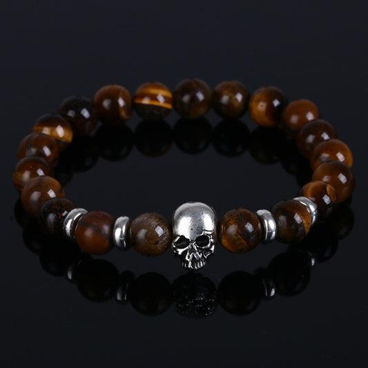 Beaded Black Natural Stone beads Skull Elastic Bracelets for Men and Women Tiger Eye Bracelets