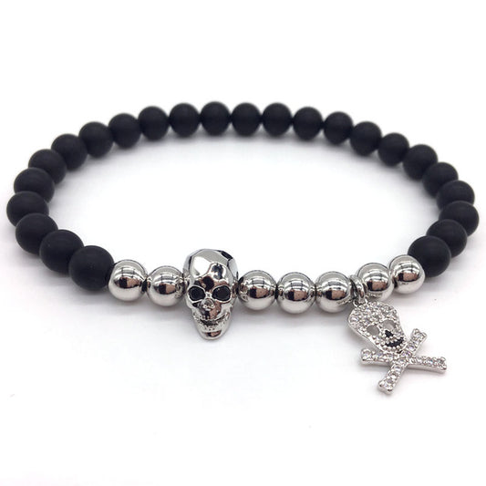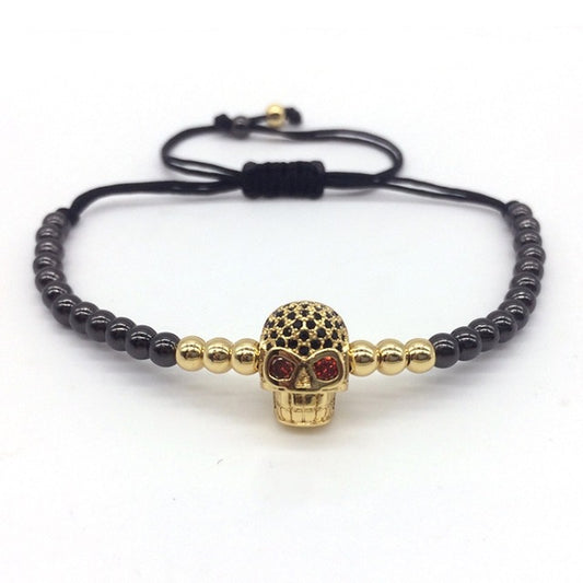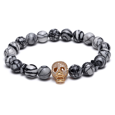 Bracelets for men Nature stone with skull Copper inlaid zircon Jewelry