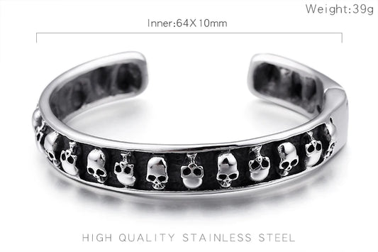 Gothic 316L Stainless Steel Biker Skull skeleton Cuff bangle bracelet 64*10mm