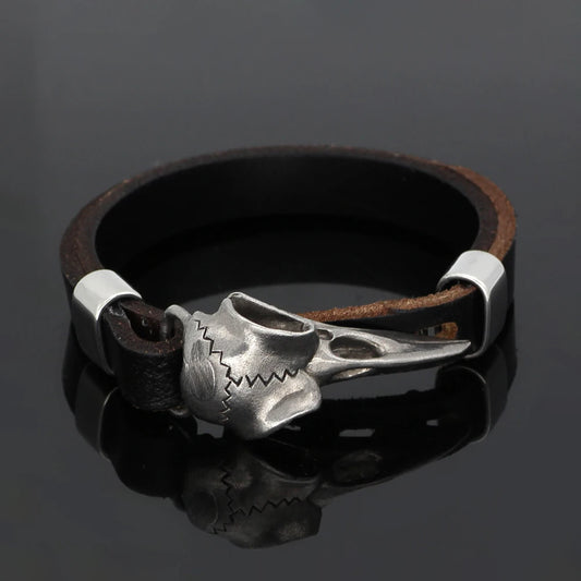 Fashion Vintage Stainless Steel Nordic Odin Crow Skull Bracelet Punk Men Viking Leather Amulet Bracelets Jewelry Gift Wholesale