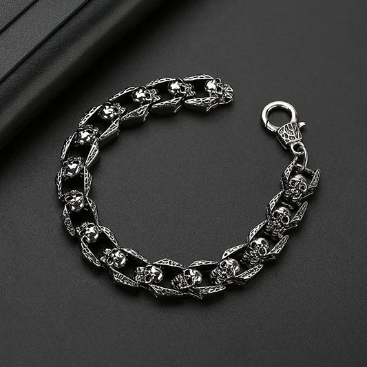 Fashion Punk Skull Head Titanium Steel Men's Bracelet Vintage Rock Motorcycle Bracelet Jewelry