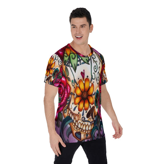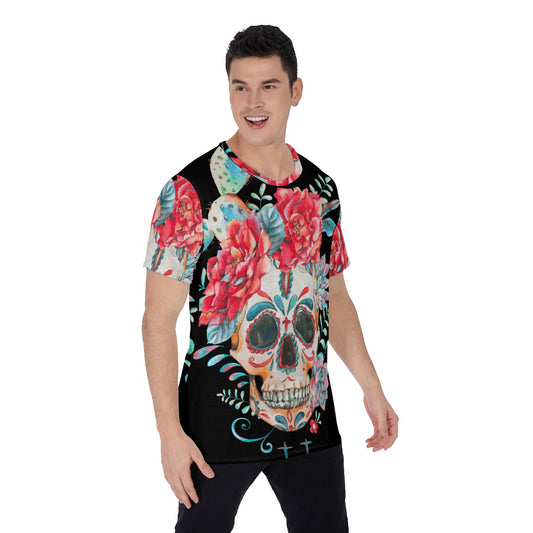 Day of the dead Men's O-Neck T-Shirt, Sugar skull floral tshirt, Gothic Halloween costume