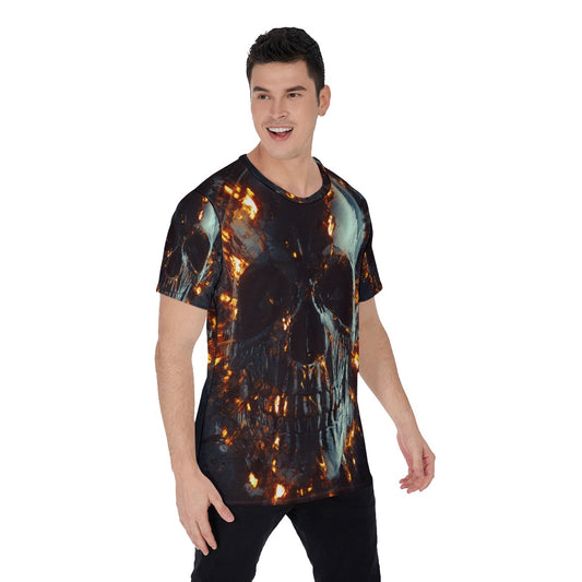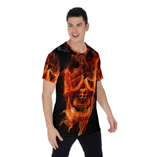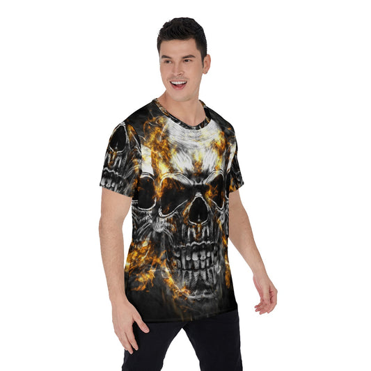 Flaming skull Men's O-Neck T-Shirt, Fire gothic skull tshirt, skeleton shirt, Halloween tshirt