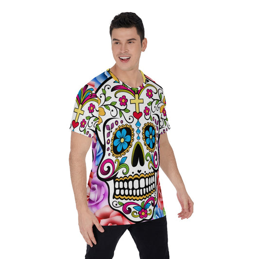 Day of the dead Men's O-Neck T-Shirt, Sugar skull Dia de los muertos skull T-shirt gothic shirt