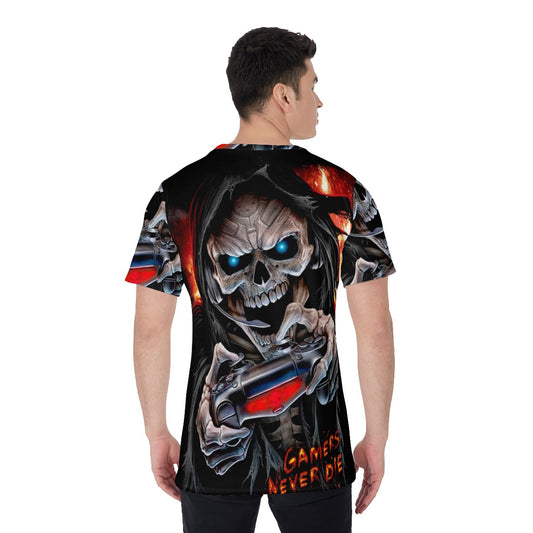 Game over skull Men's O-Neck T-Shirt, Grim reaper V-Neck skull Shirt