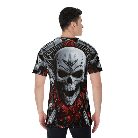 Motorcycle skull biker Men's O-Neck T-Shirt, Biker skull tshirt, Gothic skull Halloween tshirt