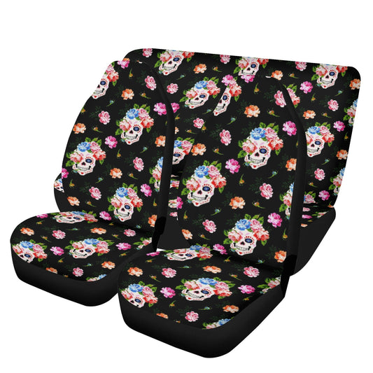 Sugar skull car seat protector, sugar skull car mat flooring, floral skull car floor mat, floral skull car tool, floral skull car seat cover