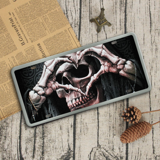 Grim repaer hear Vintage License Plate Decoration Painting, Gothic skull&bones heart license plate