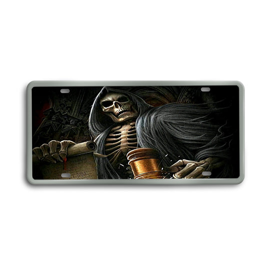Grim reaper skeleton Vintage License Plate Decoration Painting, skull&bone gothic license plate