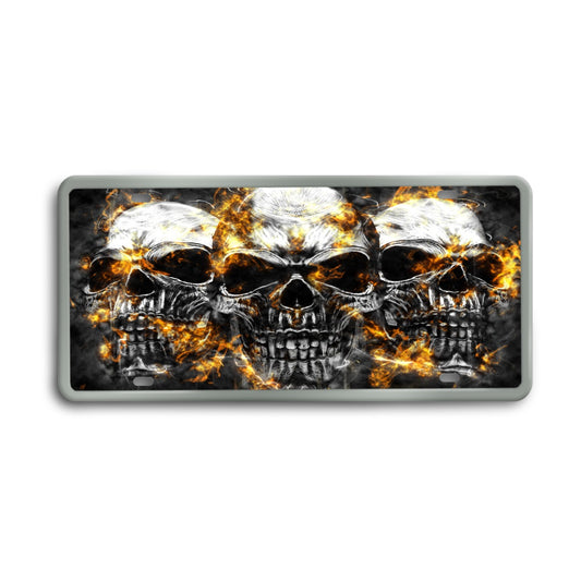 Gothic flaming skull Vintage License Plate Decoration Painting, Fire skulls Halloween license plate