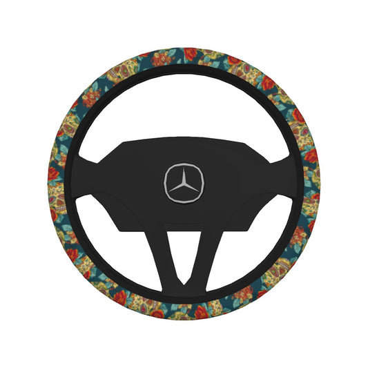Day of the dead skull Steering Wheel Cover, Sugar skull floral steering wheel cover