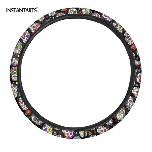 Sugar Skull Printed Full Lined Soft Padding Steering Wheel Cover