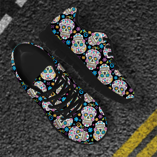 Sugar Skull Pattern Stylish Ladies Flats Shoes Breathable Lace Up Air Mesh Sneakers