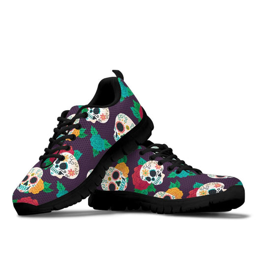 Rose skull, floral skull Halloween skeleton Women's Mesh Sneakers