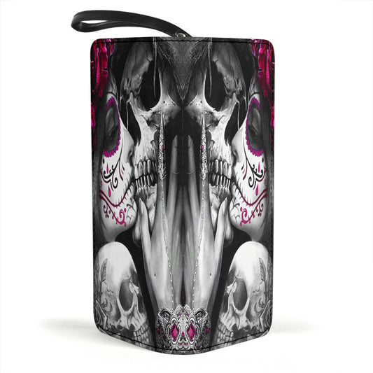 Day of the dead Long Wallet With Black Hand Strap, Sugar skull wallet clutch bag purse