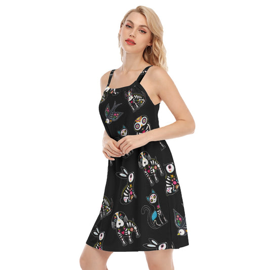 Sugar skull animal Women's Sleeveless Cami Dress, Day of the dead women's dress