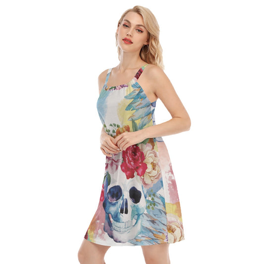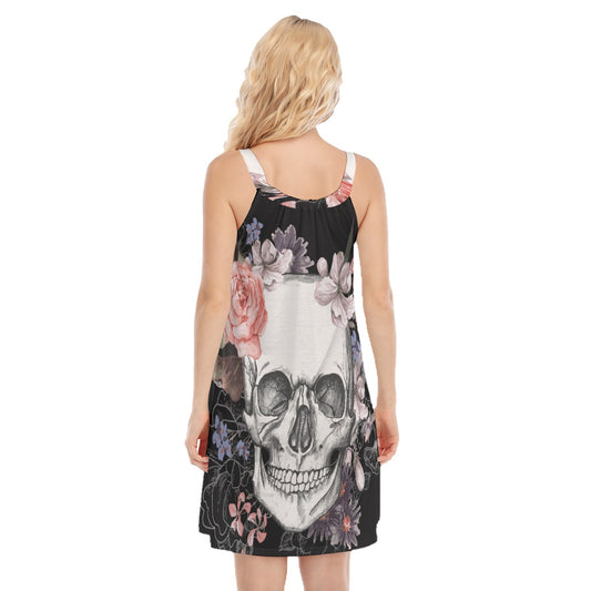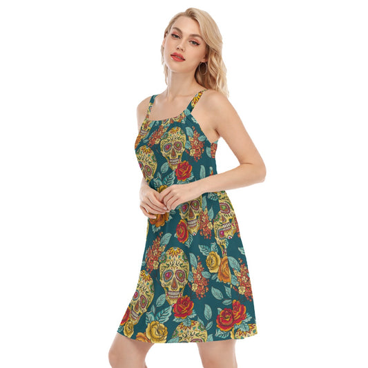 Floral skull Women's Sleeveless Cami Dress, rose skull women dress, chrismas dress, halloween dress