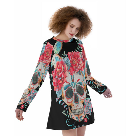 Floral skull Women's Raglan Sleeve Dress, Sugar skull day of the dead dress