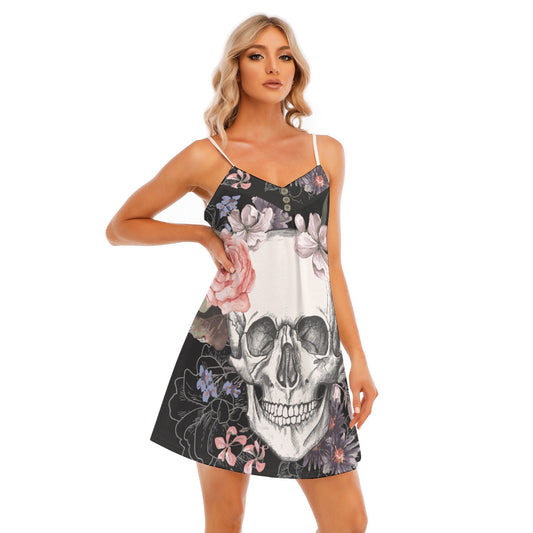 Floral sugar skull Women's V-neck Cami Dress