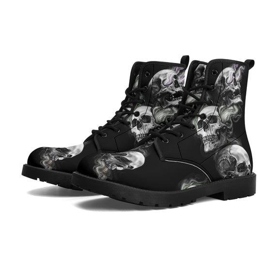 Halloween skull leather boots, Gothic skull boots for men women, Flaming skull women's boots skeleton boots, evil Bikers skull leather boots