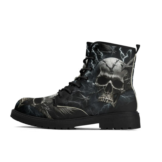 Gothic skull boots for men women, Death punisher skull gothic women boots skeleton boots, Halloween reaper leather boots shoes streetwear