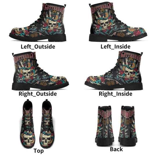 Floral skull leather boots, Halloween skull boots for men, Gothic skeleton skull boots for women, skull boots, Rose skulls men women boots