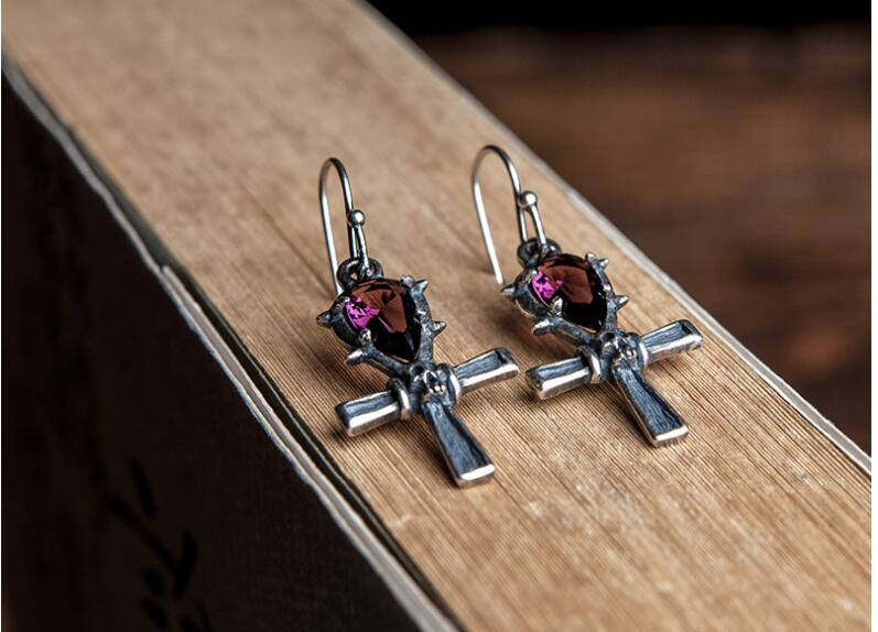 100% 925 Sterling Silver Drop Earrings Crystal Cross And Skull Shape Earrings