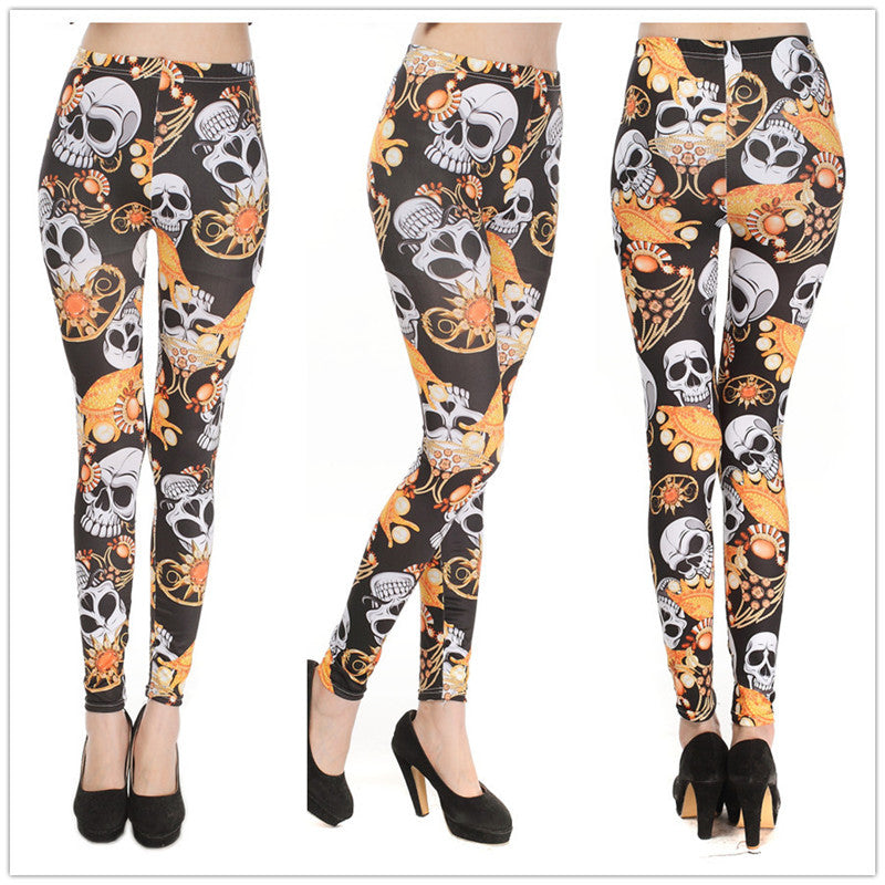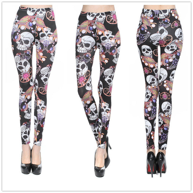 2016 Women Harajuku Skull Leggings New Arrival Skeleton Printed Legging Fashion Sexy Skinny Pants Hot Sale 3 Colors DD8289