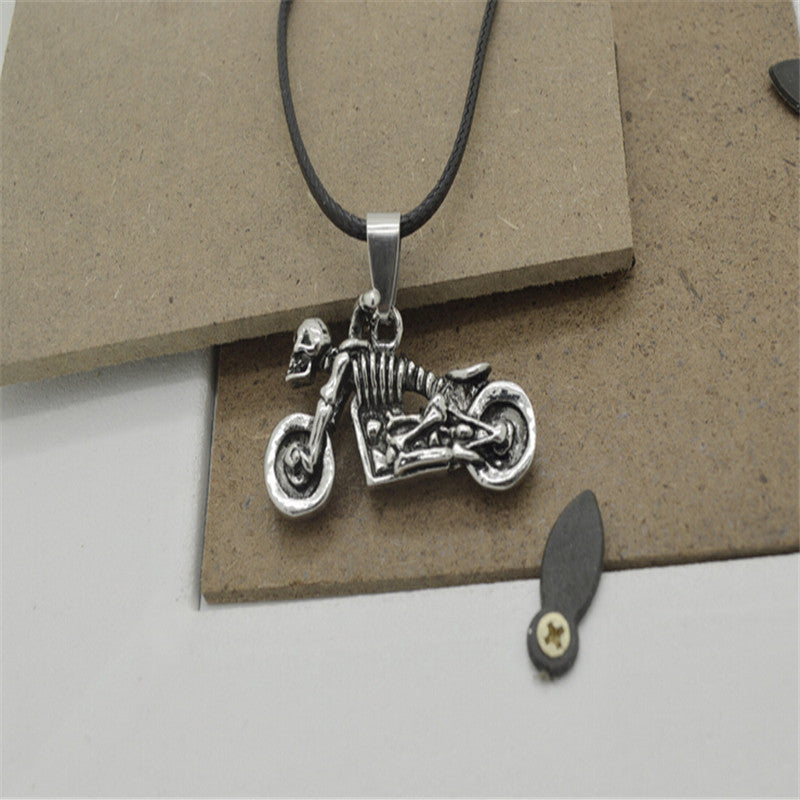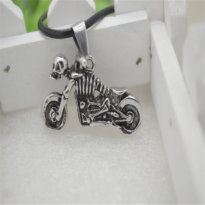 2017 Hot European And American Alloy Skull Motorbike Necklace Rider Biker Pendant Chain Necklaces