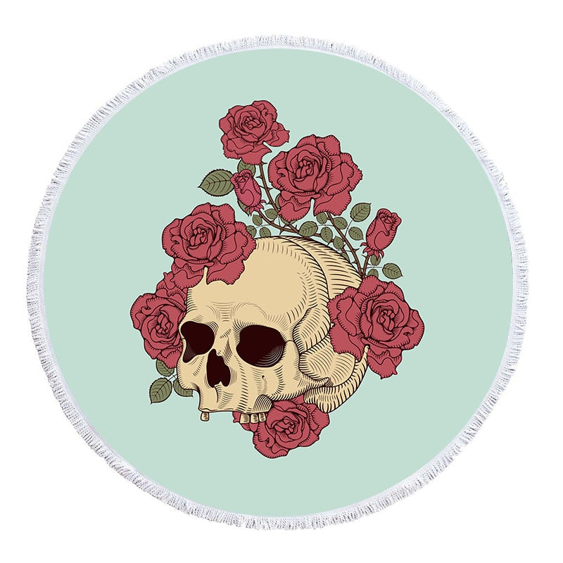 3D Sugar Skull Printed Beach Towel With Tassel Microfiber Large Bath Towel